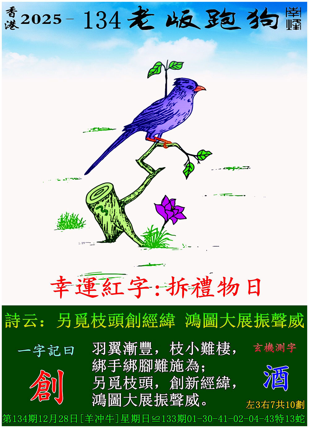 134期老版跑狗一字記之曰:【創】 玄機測字:《酒》
