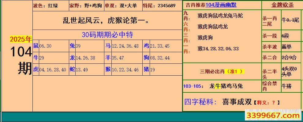 主题 :104期:小鱼儿30码期期中+幽默猜测 |