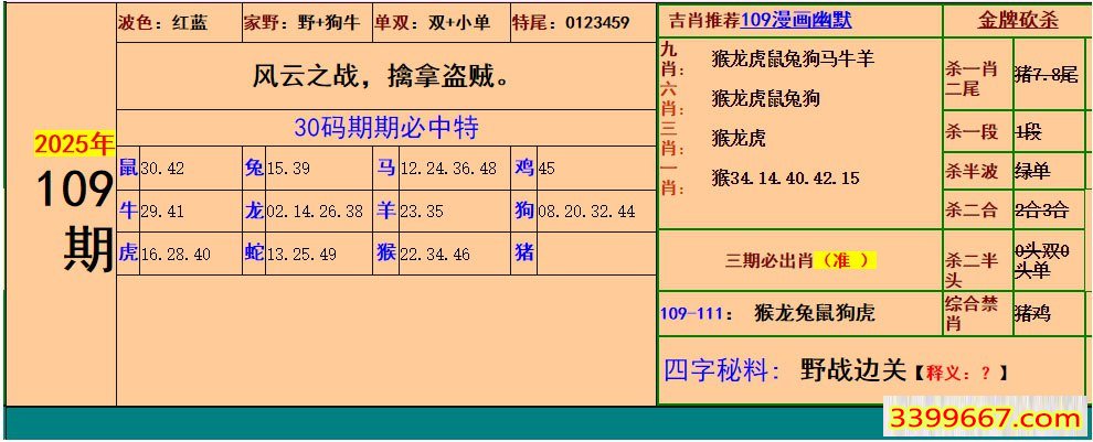 主题 :109期:小鱼儿30码期期中+幽默猜测 |
