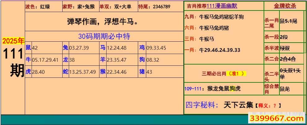 主题 :111期:小鱼儿30码期期中+幽默猜测