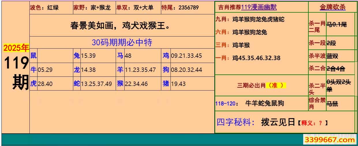 主题 :119期:小鱼儿30码期期中+幽默猜测