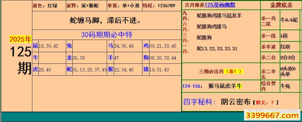 主题 :125期:小鱼儿30码期期中+幽默猜测