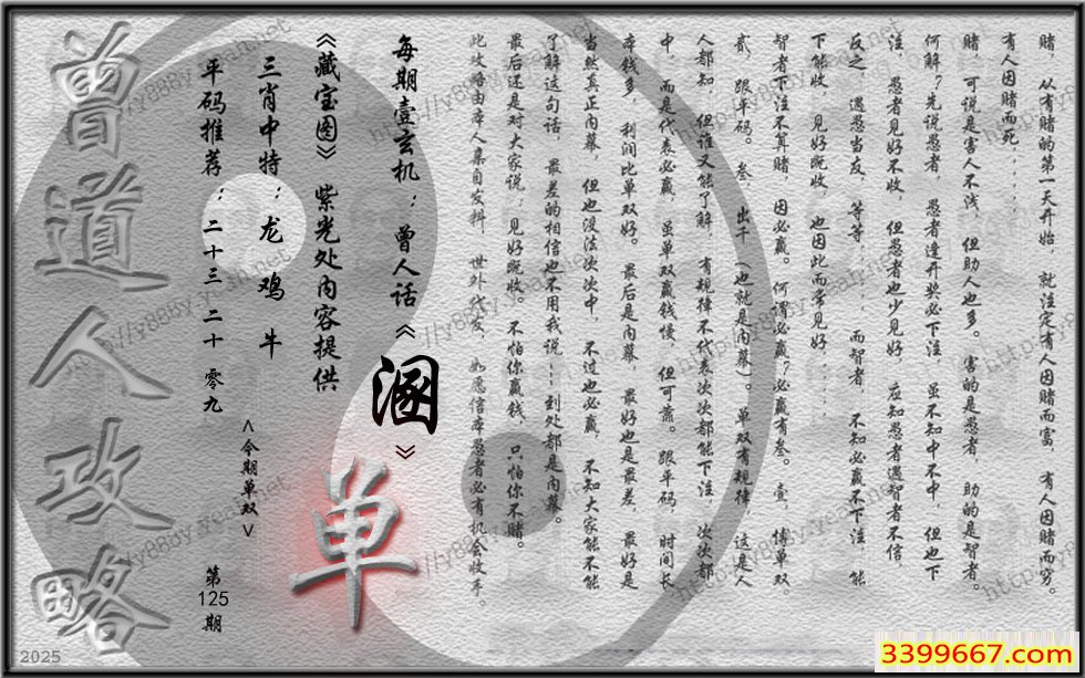 主题 :125期藏寶圖 新:合向杨妃冢上生 老:沙上不闻鸿雁信 禁:马 禁:8尾