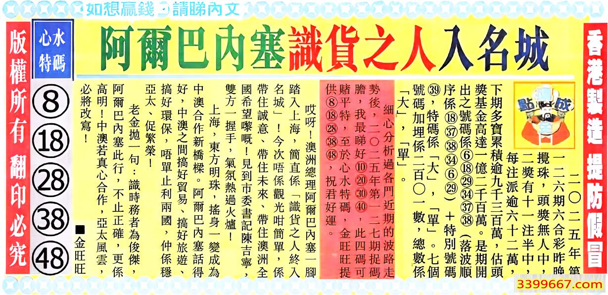 | 主题 :127期:金旺旺信箱彩民推荐→→《要碼唔難 要腦先真》 |