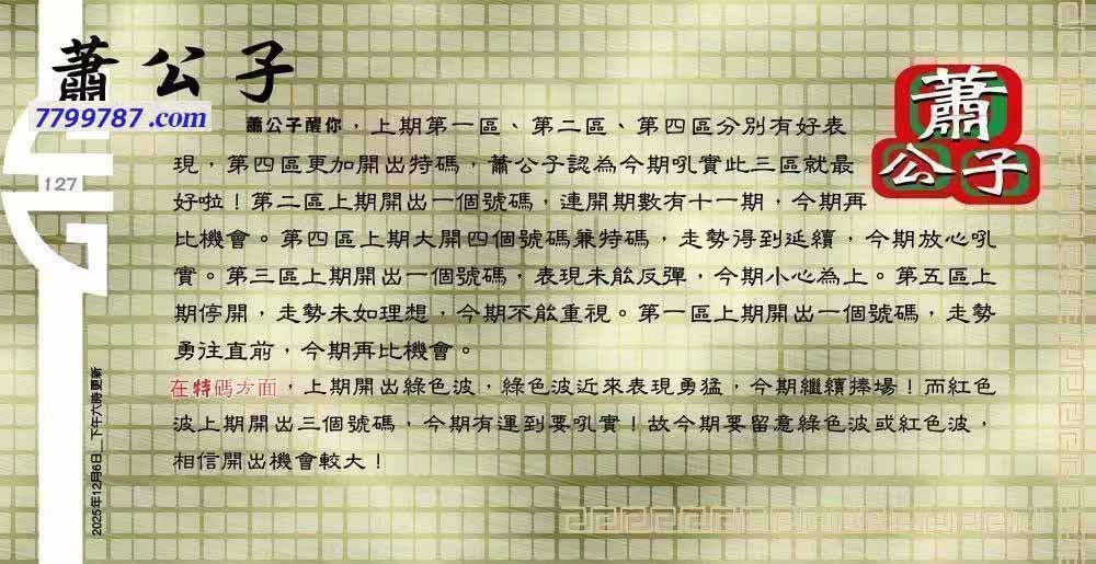 127期:六合皇金句/老总论码/萧公子/林大师/五行夺码/老总信箱截