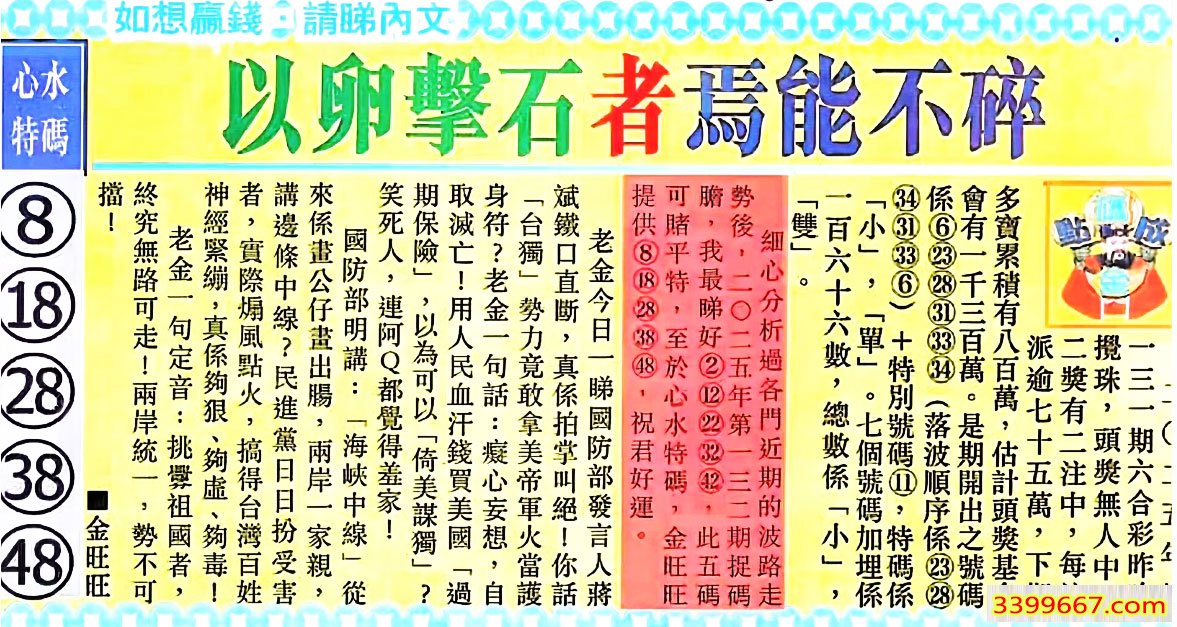 主题 :132期:金旺旺信箱彩民推荐→→《成見誤人要看清》