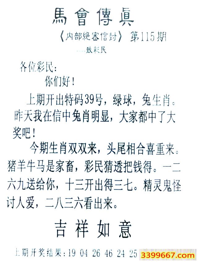 115期:首发推荐:≮馬會傳眞≯→(香港正版)
