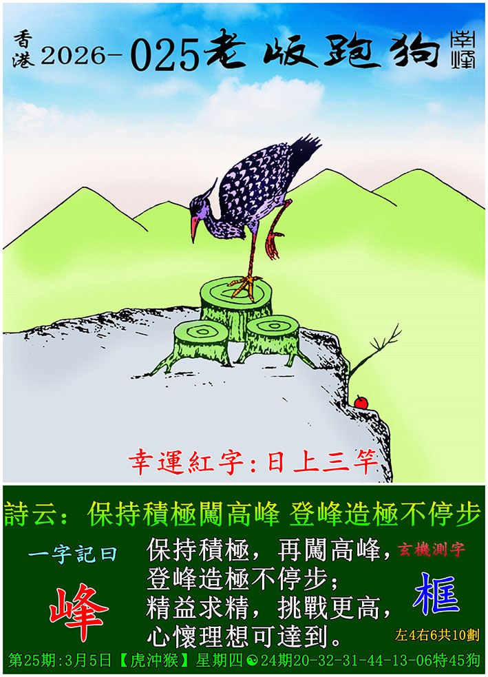 025期老版跑狗一字記之曰:【峰】