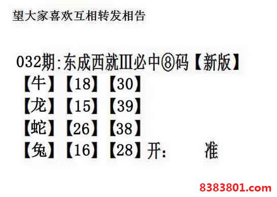 主题 : 032期:另版【东成西就四肖8码】